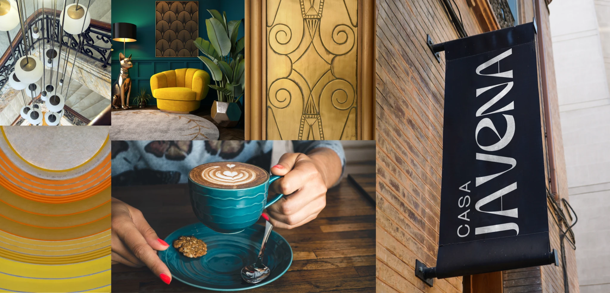 La identidad de Casa Javena combina referencias a la naturaleza y el arte, utilizando líneas fluidas y ornamentos sutiles que transmiten sofisticación y creatividad. Este equilibrio entre lo clásico y lo innovador le permite a la marca destacarse como un referente de estilo, evocando un ambiente de exclusividad que invita a explorar desde cafés y tiendas hasta espacios de yoga y bienestar. Casa Javena se presenta así como una marca que armoniza la belleza visual con una propuesta de valor integral, creando una conexión genuina con cada visitante.